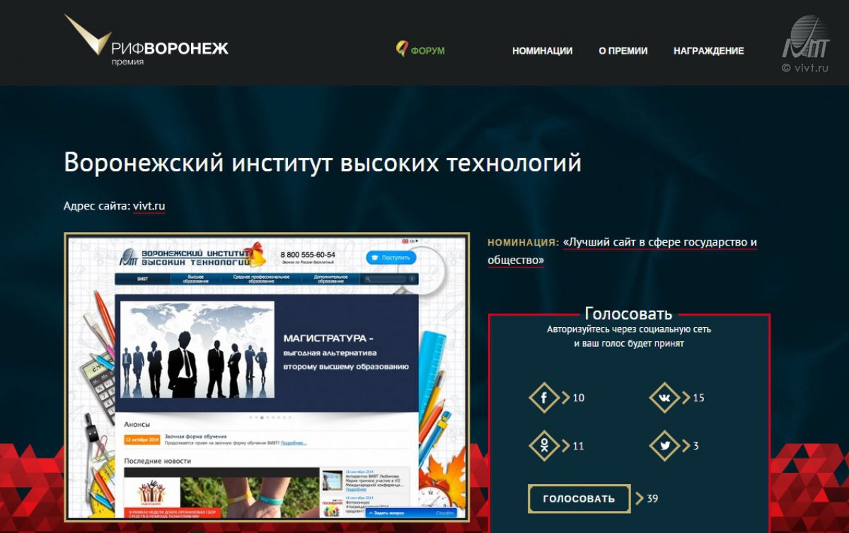 Голосуйте за наш сайт в интернет-премии